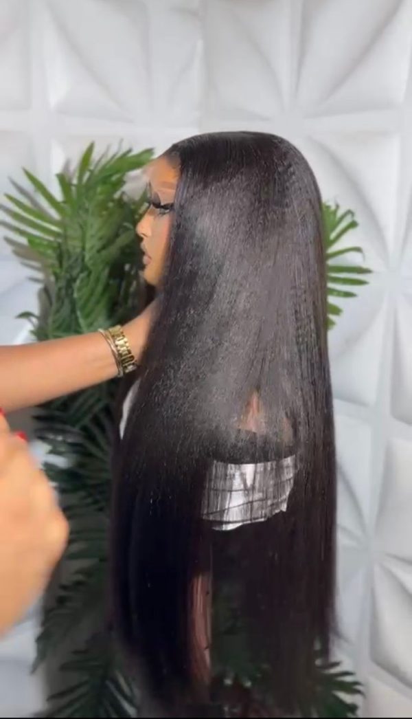 The soft Yaki straight texture mimics the look and feel of relaxed natural hair, giving you a sleek yet realistic appearance. Paired with a 5×5 glueless closure, this unit provides effortless installation with a secure fit—no glue required. The built-in elastic band ensures comfort, stability, and convenience for everyday wear.