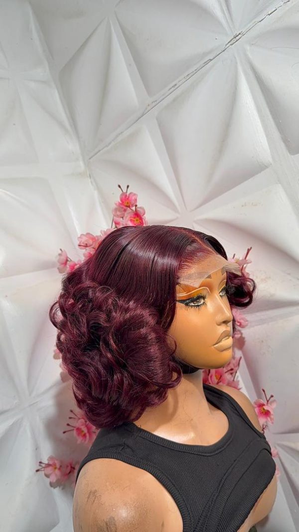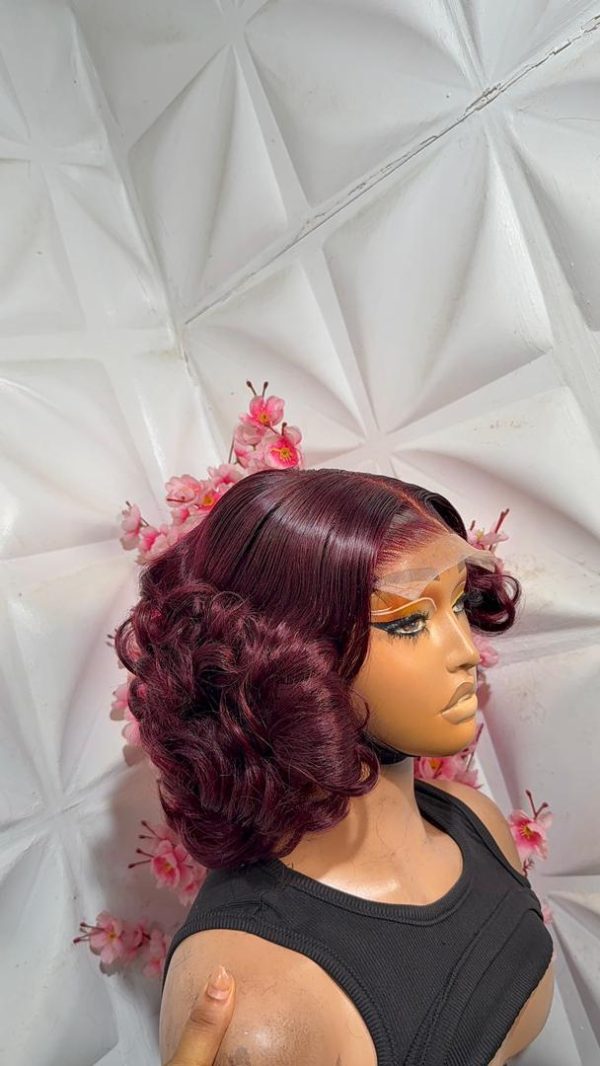 Bouncing into the day with this cute short wig! available in Natural color, wine and natural colour with red strips.